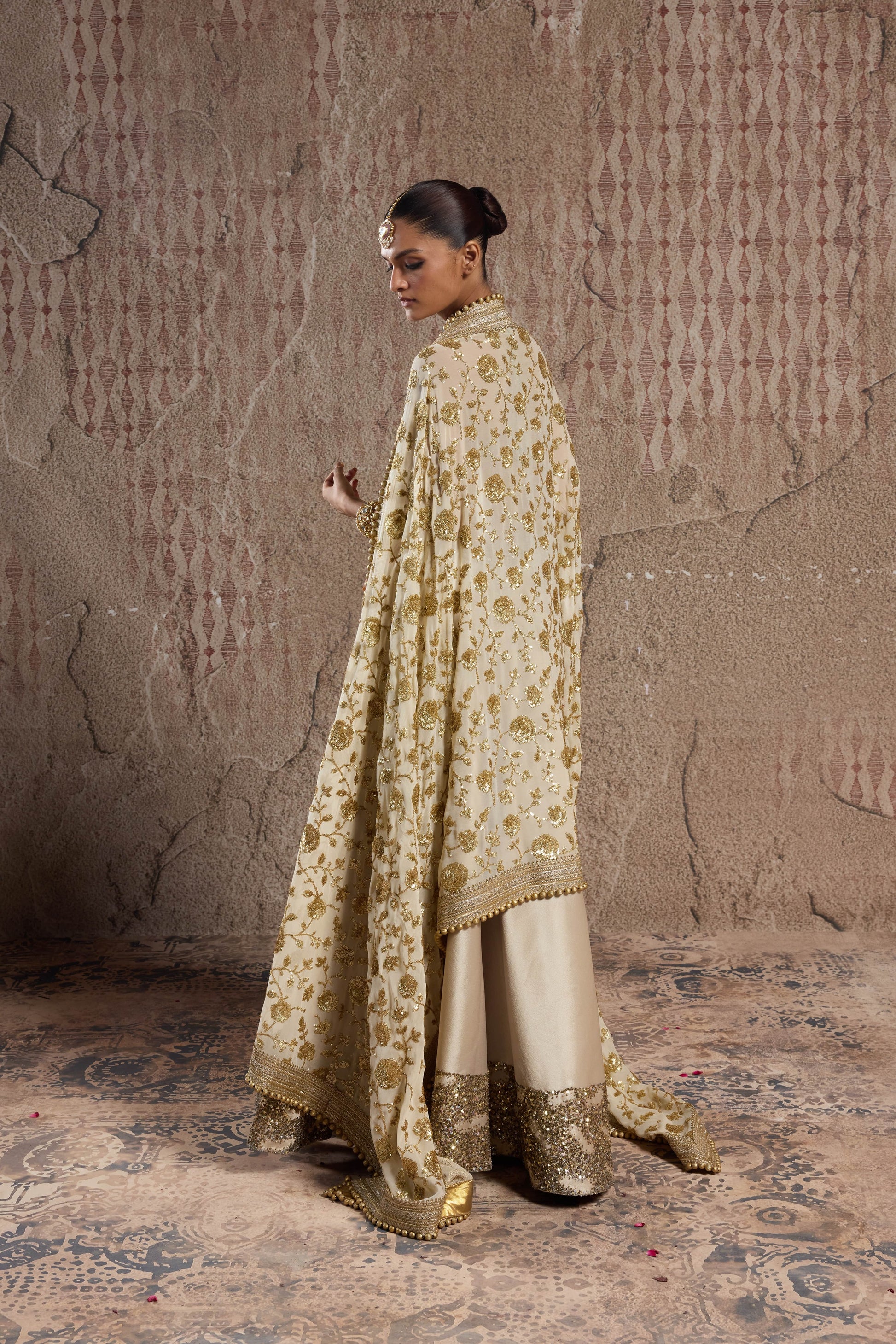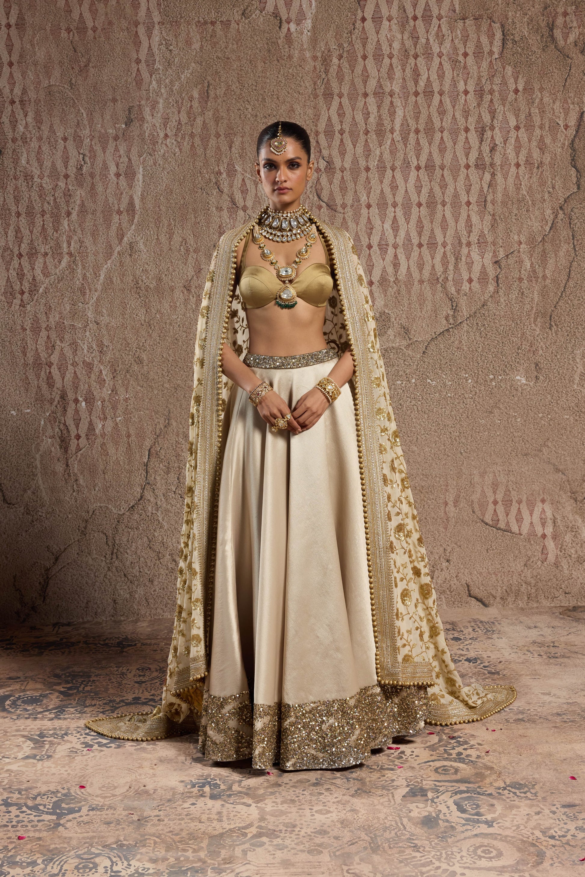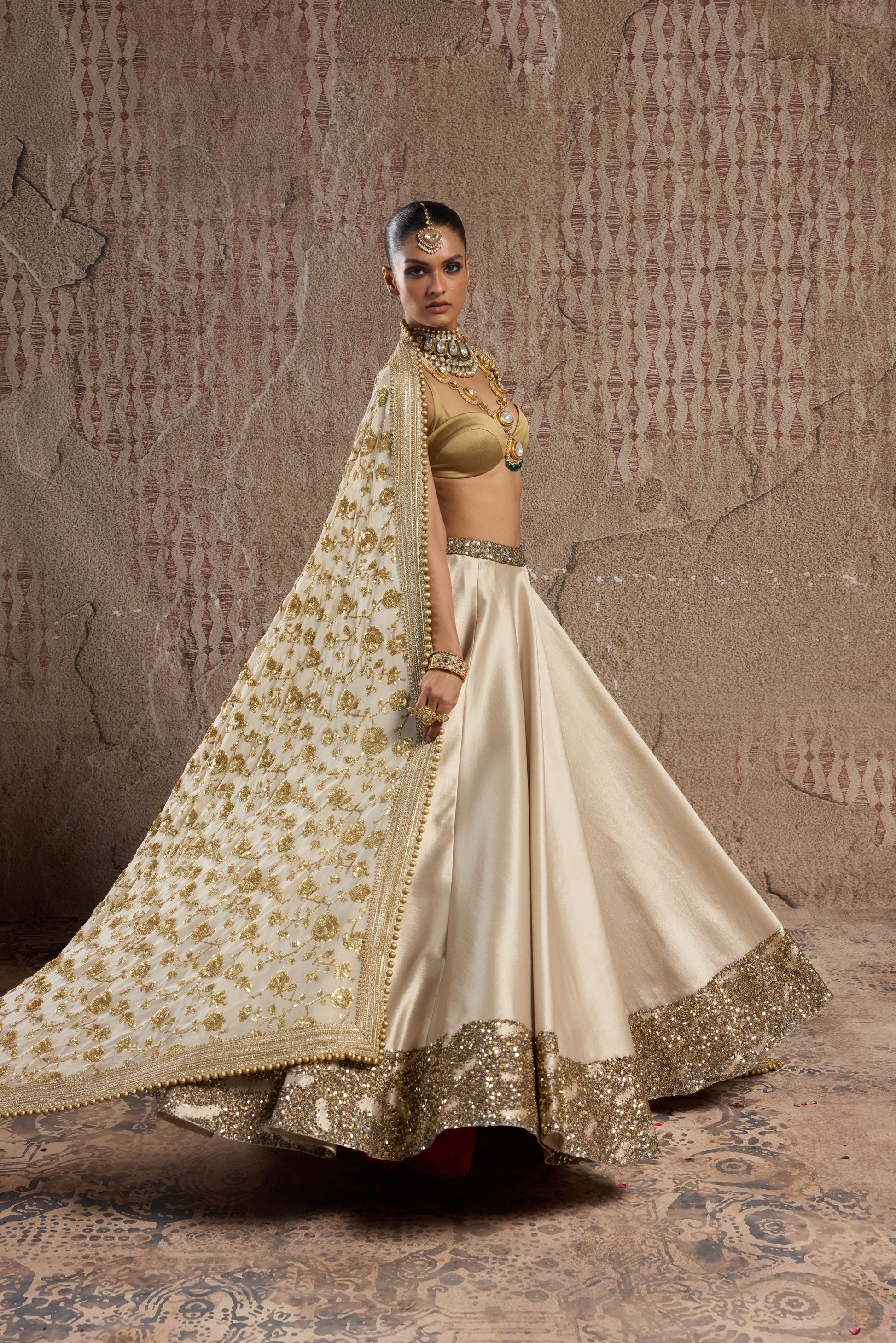 GOLD SHIMMER IMPORTED TISSUE ORGANZA LEHENGA SET WITH BROAD HANDCRAFTED BORDER