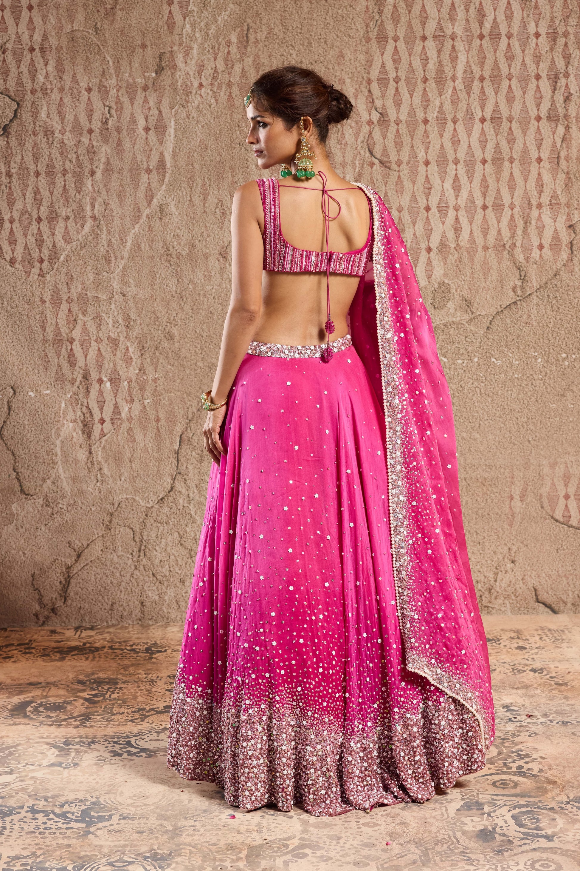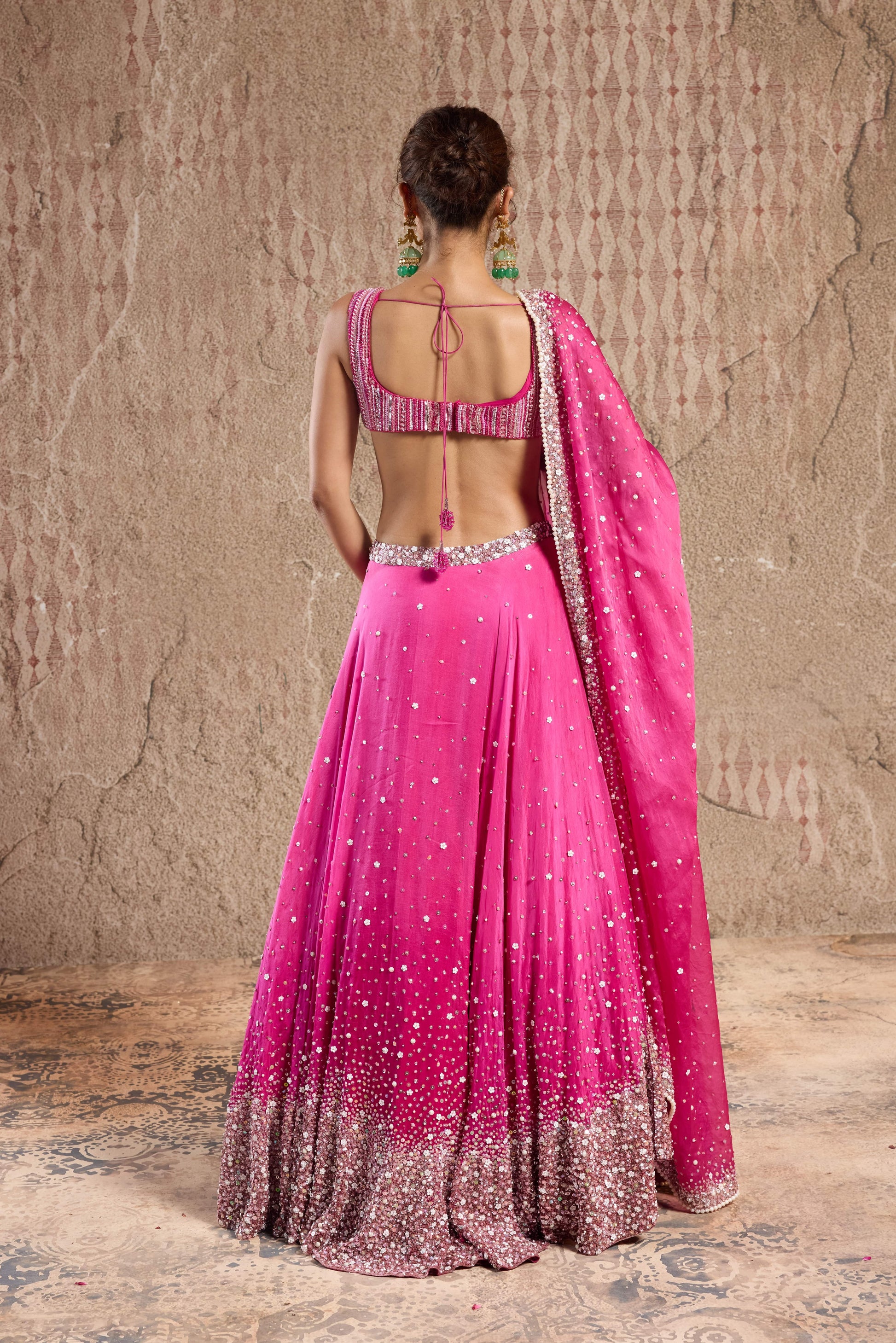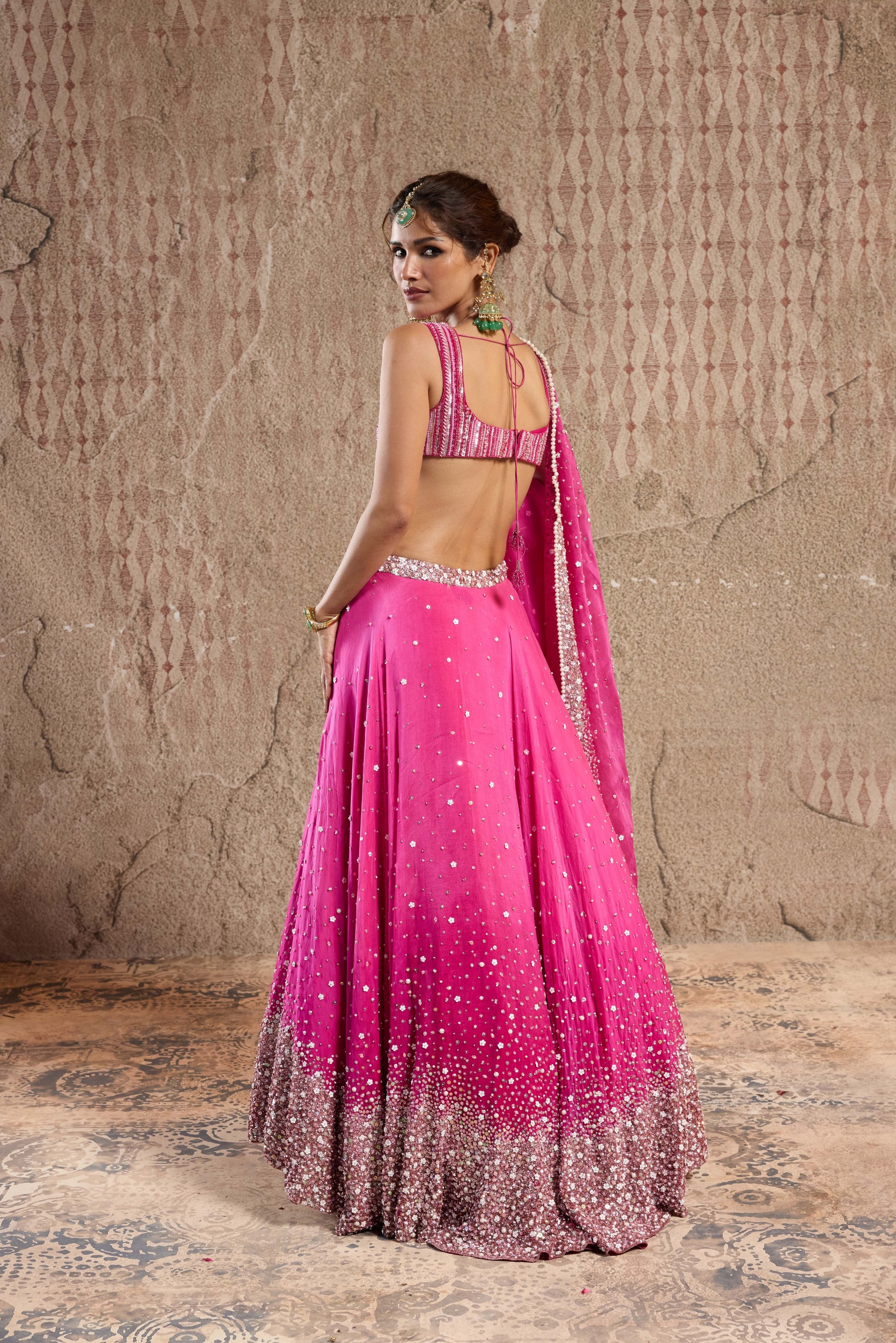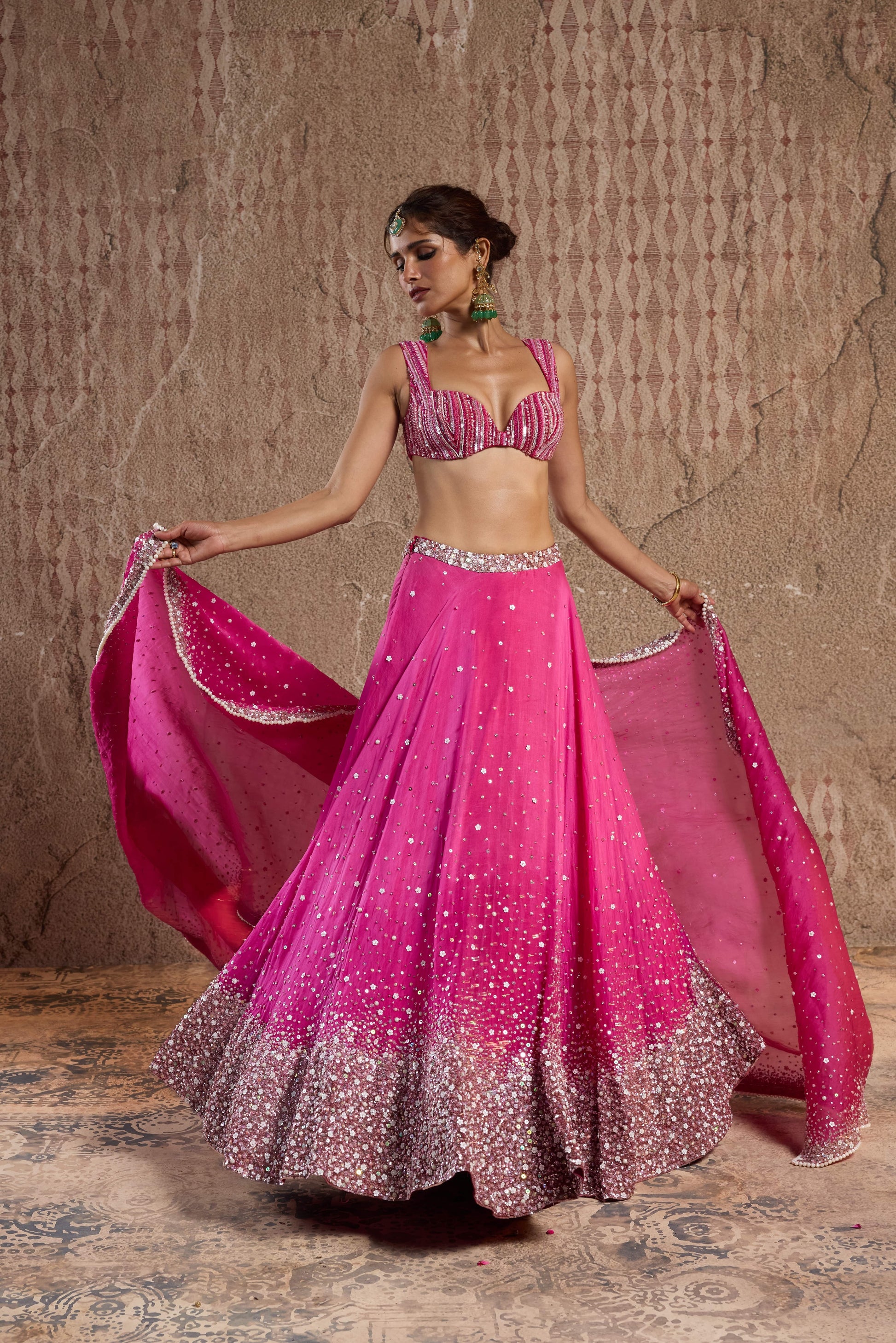 OMBRE PINK ORGANZA LEHENGA SET WITH SPAWLING SEQUIN EMBELISHMENTS