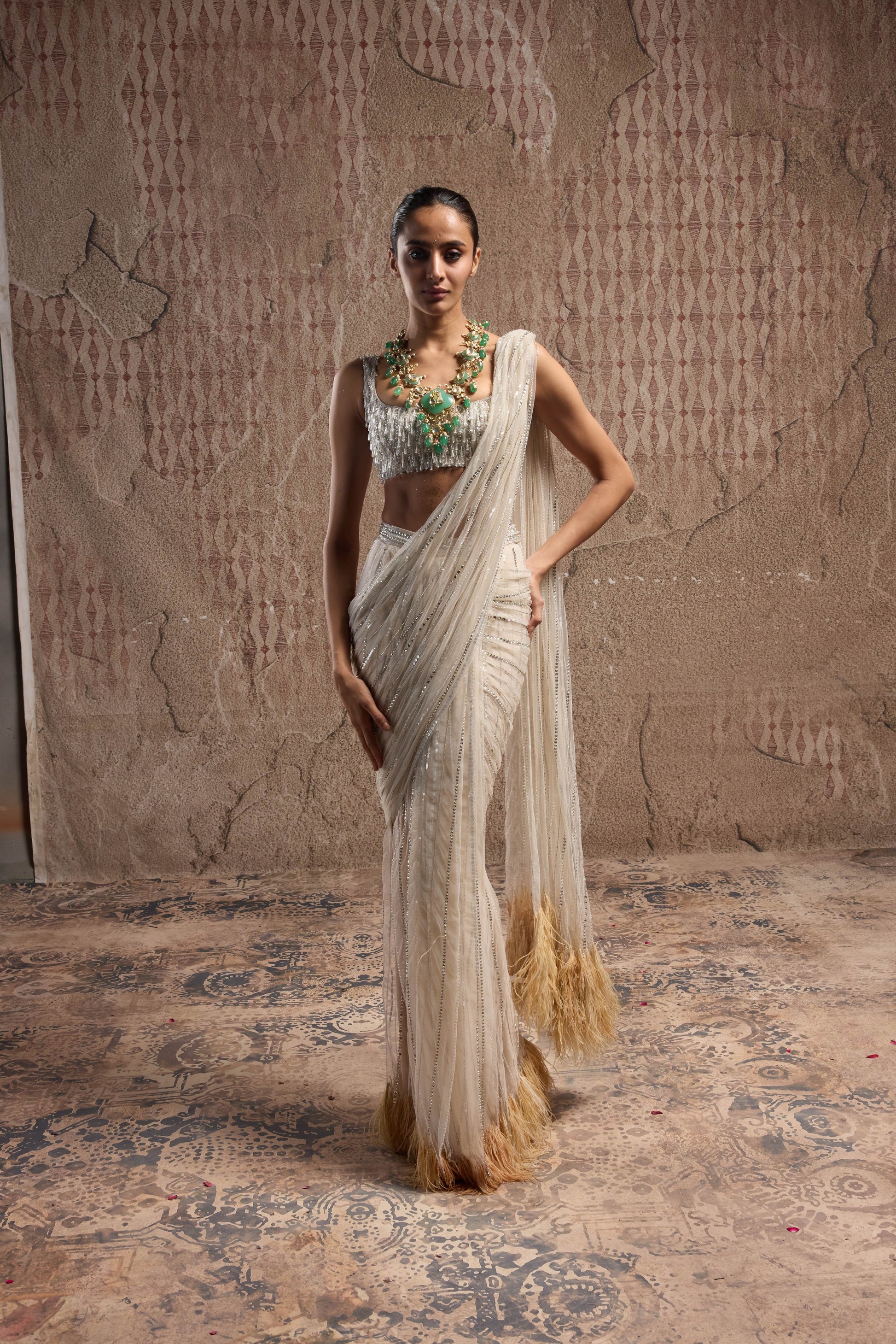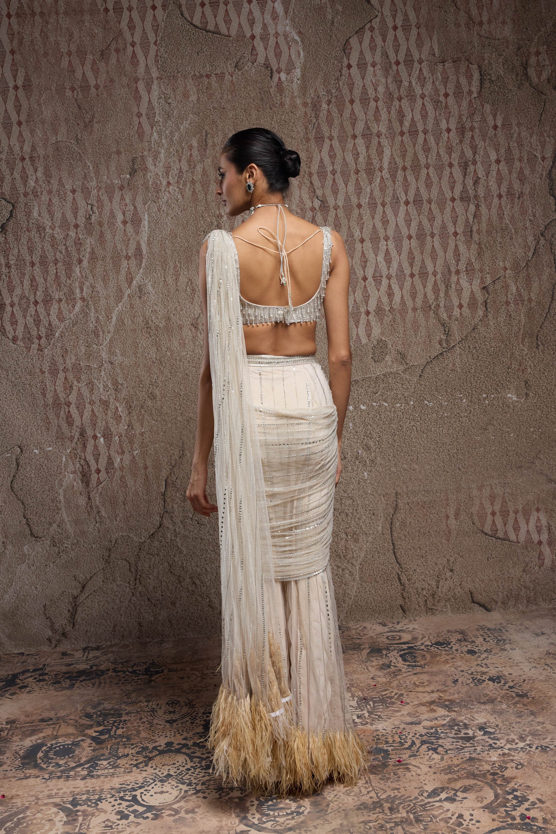 SLEEK FEATHERED SAREE FOR THE MODERN MUSE