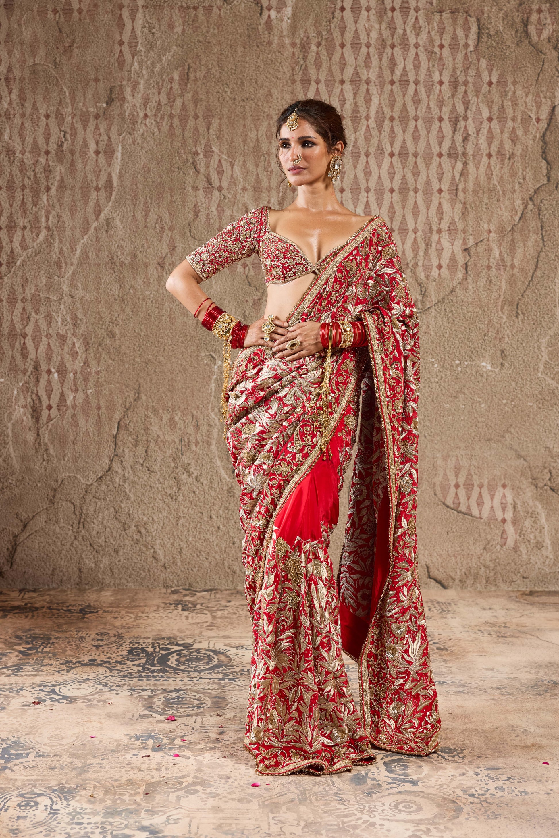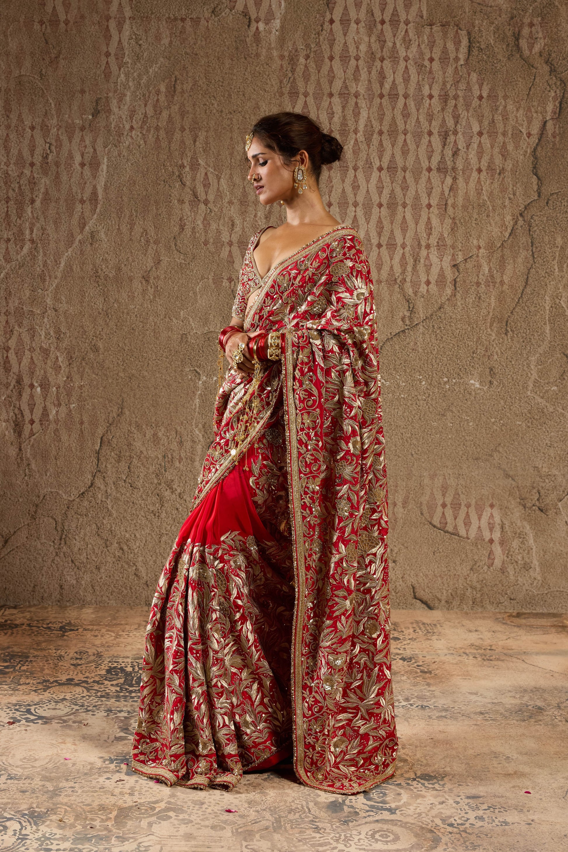 TIMELESS RED WEDDING SAREE WITH ORNATE EMBROIDERY