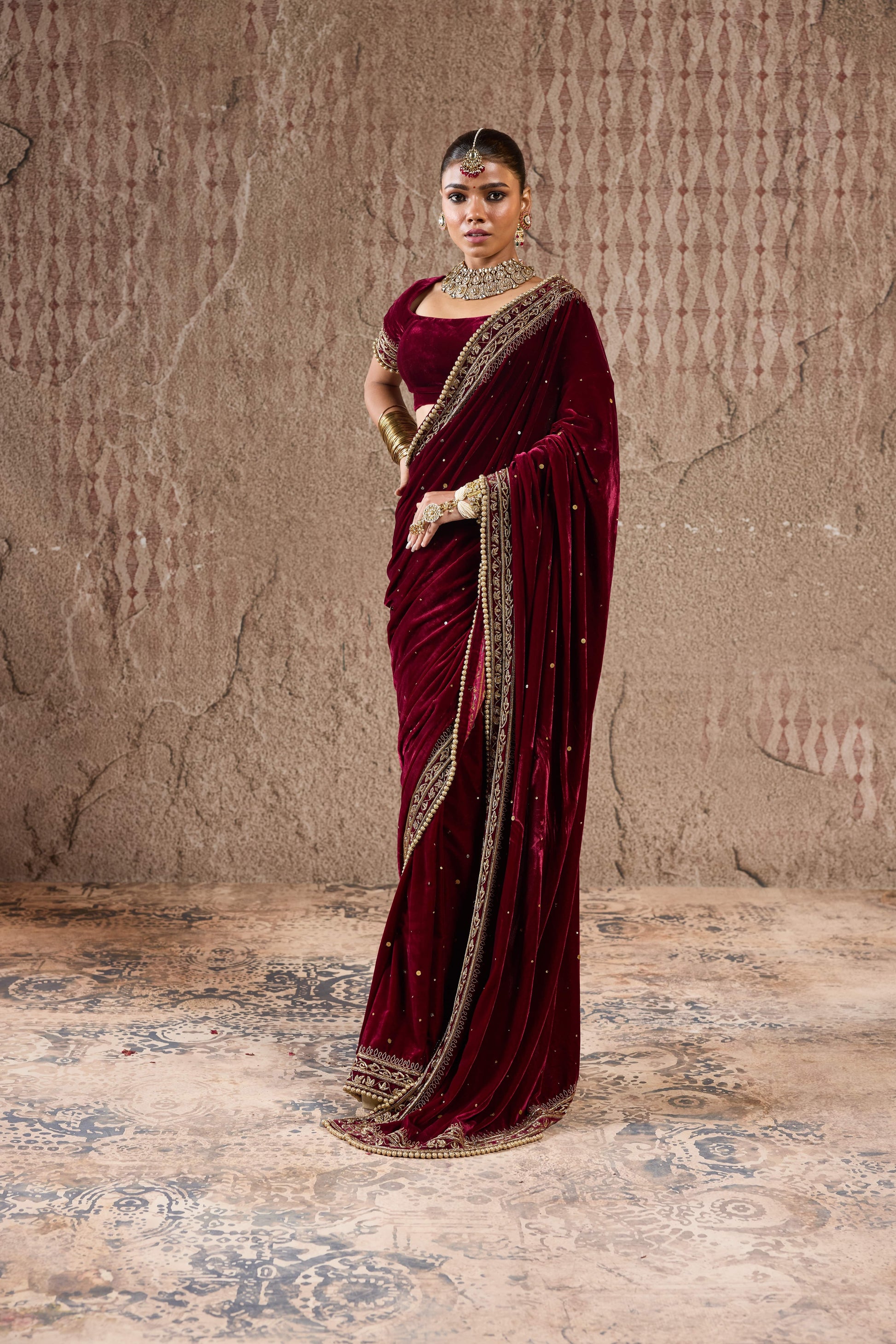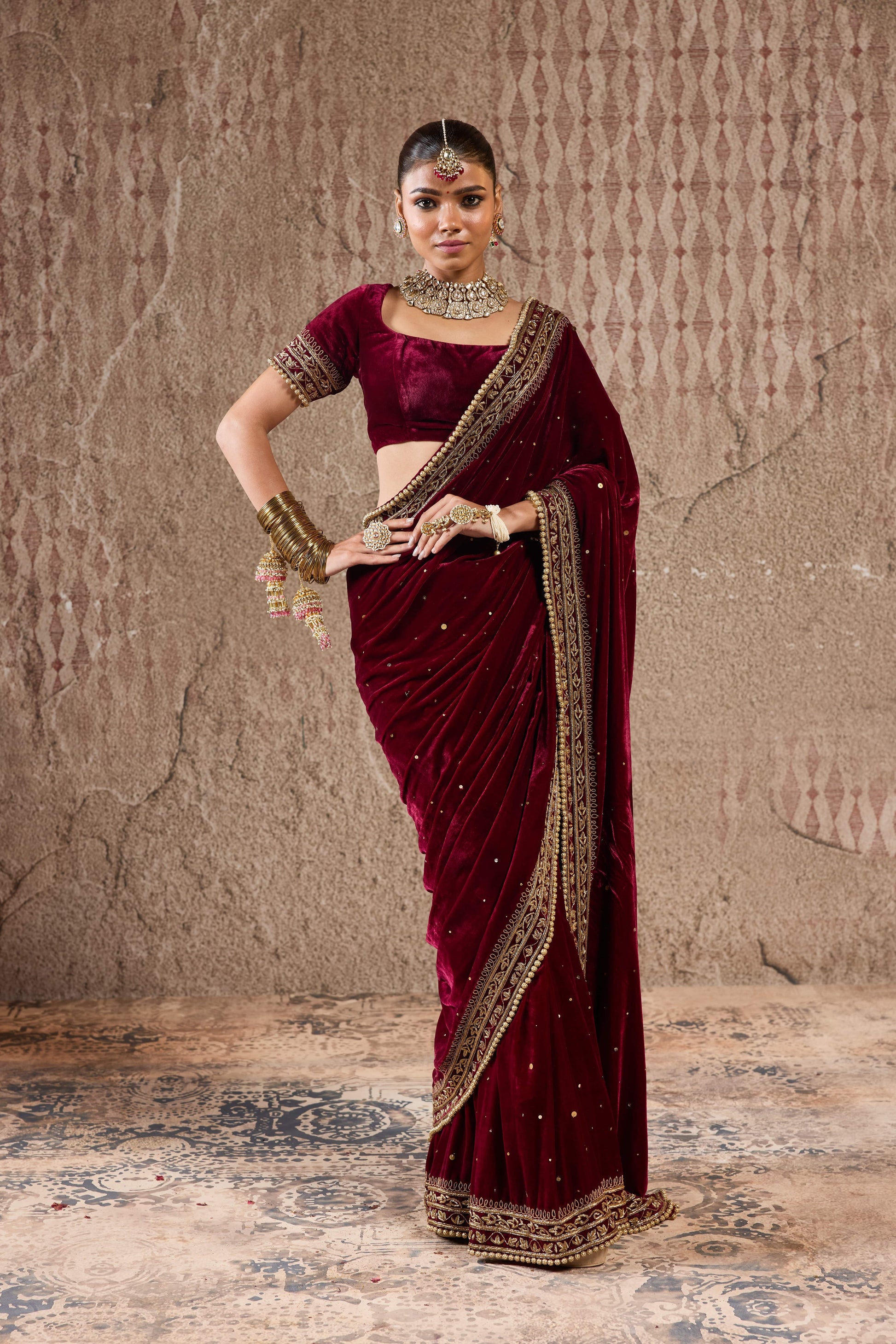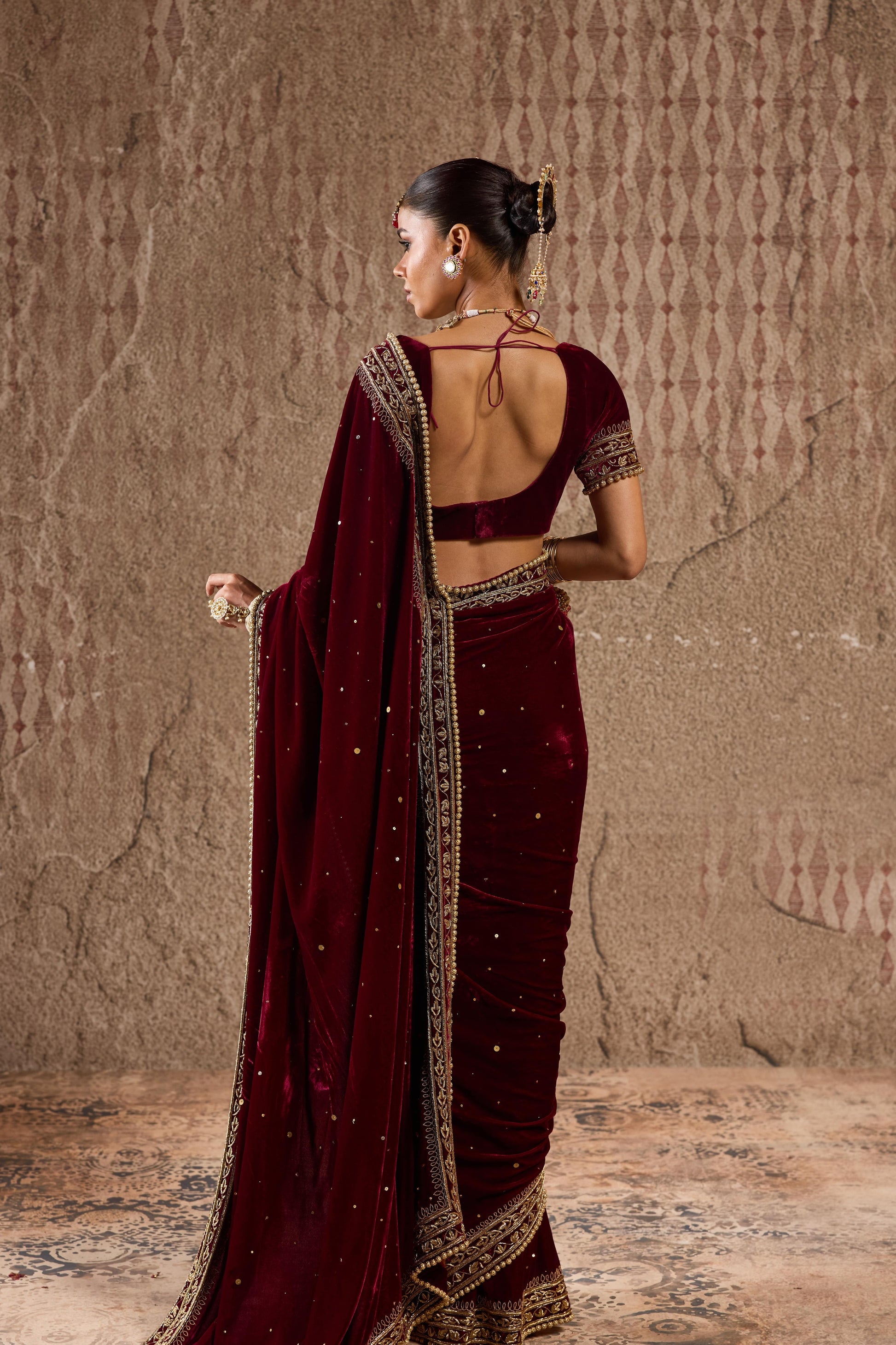 OPULENT VELVET SAREE WITH INTRICATE ZARDOSI EDGING